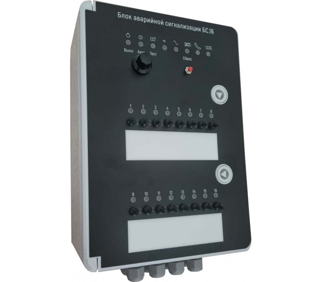 БС.8 и БС.16 — сигнальные блоки производства Fancom. Индекс обозначает количество входных контактов соответствующего блока. Сигнальные блоки подают сигналы при возникновении заданных ситуаций, таких как:• возникновение или исчезновение контакта между блоком сигнализации и объектом;• перебои в подаче электропитания;• сбои в одной или нескольких фазах электросети;• падение напряжения на аккумуляторе (ниже 9 В постоянного тока).Подачу сигналов можно настраивать в соответствии с потребностями. Например, к сигнальному блоку можно подключить мигающий индикатор, сирену или устройство для набора телефонного номера (номеронабиратель).• Первый выход используется для подачи аудиовизуальных сигналов. Сигнал может подаваться непрерывно или с определенным интервалом.• Ко второму выходу можно подключить телефонный номеронабиратель. Контакт также можно активировать с определенной задержкой.Меняя положение переключателей в сигнальном блоке, можно включить или отключить функцию самокорректировки.• Блок с включенной самокорректировкой прекращает подавать аудиовизуальный сигнал, как только устраняется вызвавшая его причина.• Блок с выключенной функцией самокорректировки продолжает подавать сигнал до тех пор, пока не будет нажата кнопка сброса.• Световой сигнальный индикатор на передней панели отключается, как только устраняется ситуация, послужившая причиной сигнала.Платы управления Количество входных контактов 16 Написать отзыв