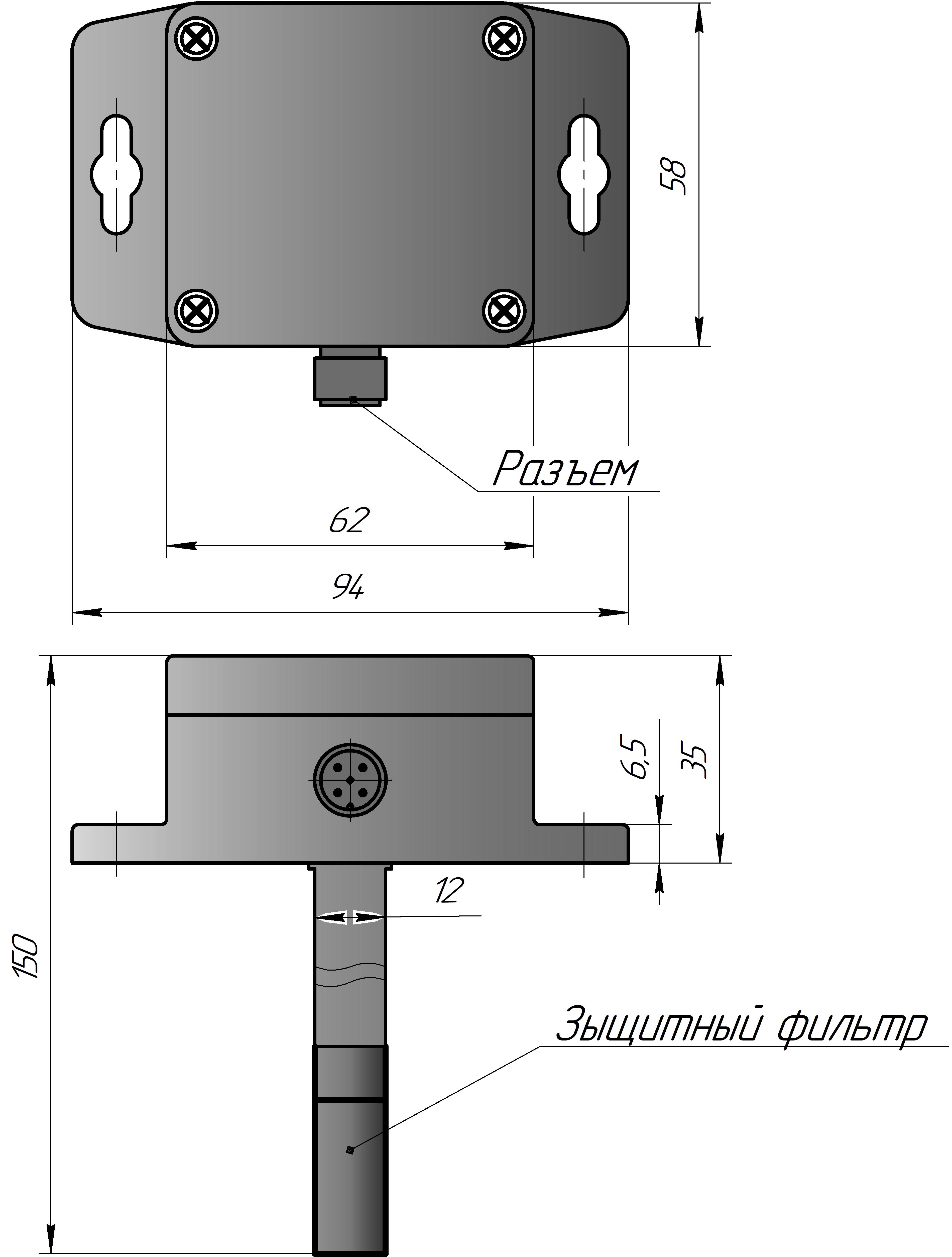 Принцип работы. В датчике в качестве первичного сенсора влажности и температуры используется чувствительный сенсор на емкостном принципе действия. Окружающий воздух к чувствительному сенсору поступает через съемный фильтр датчика. Фильтр предохраняет сенсор от загрязнения. Данные о влажности окружающего воздуха с сенсора поступают в плату обработки данных, и, далее преобразуются в выходные напряжения или ток, пропорционально измеренной сенсором влажности.