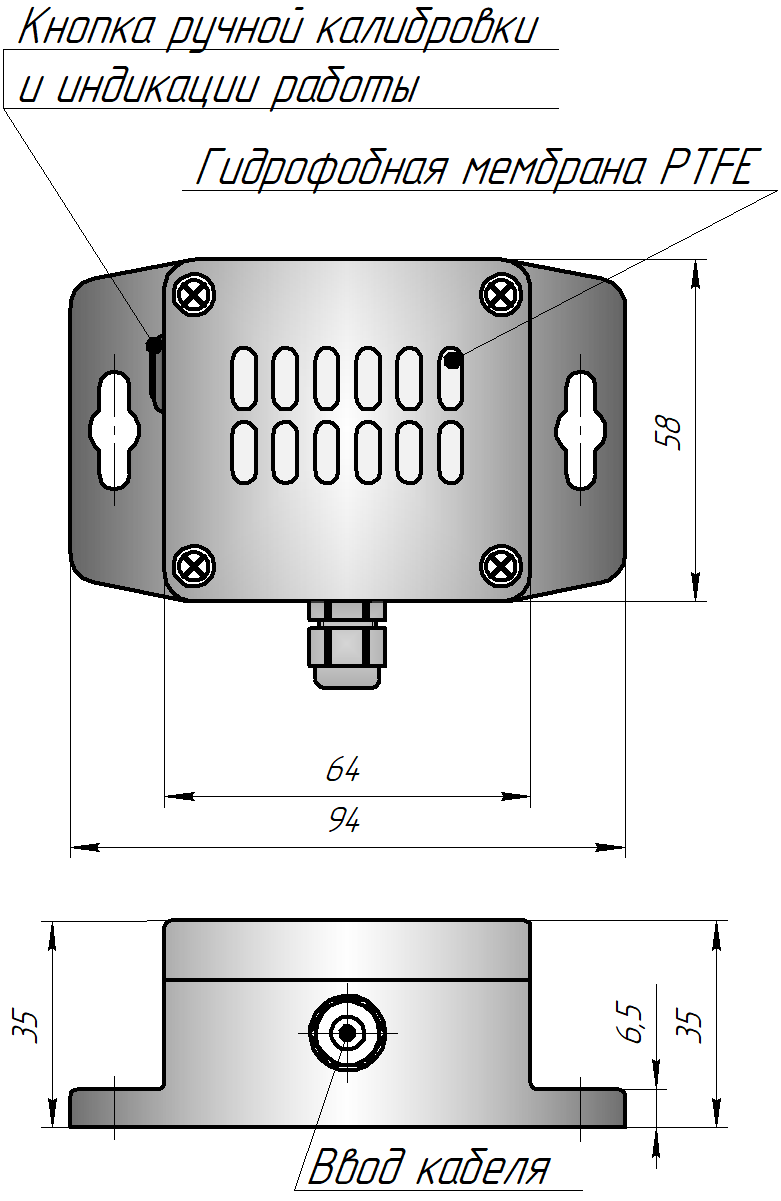 Благодаря защитной PTFE мембране возможна работа датчика в условиях высокой влажности воздуха (более 95%)!