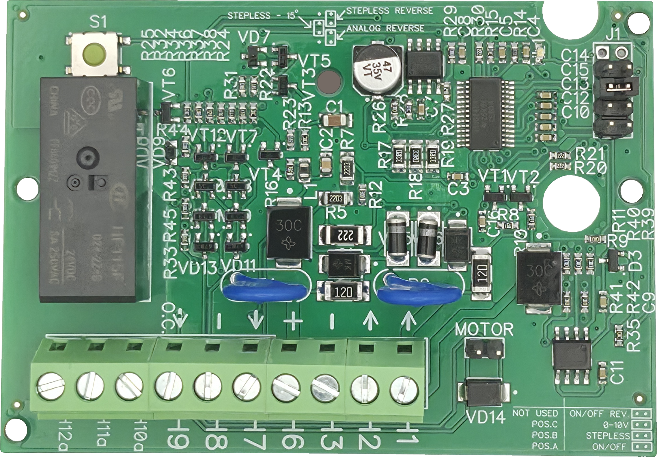 Плата управления для DA 74 (универсальная) с микродвигателем (арт. 60-43-2976) предназначена для управления электроприводами разных производителей: SKOV, Big Dutchman, Lufberg, Polar Bear, Joventa и другими аналогичными приводами. С помощью джампера переключения можно работать на разных режимах (ON/OFF, STEPLESS, 0-10v ANALOG, ON/OFF REVERSE и др.). Благодаря бесконтактной связи между платой и приводом (при помощи магнита) исключается износ переменного резистора, как в более ранних моделях платы. В комплект поставки входит: плата управления, микродвигалель, креплние с магнитом, муфта соединения.